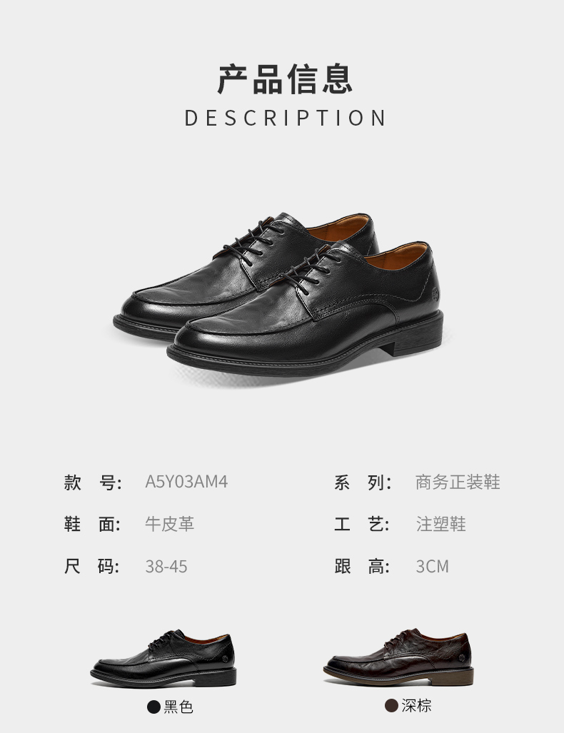 | 风格:商务正装 | 色系:棕色 | 跟高数值:3CM | 40码鞋宽参考(男):11.5CM | 性别:男子 |