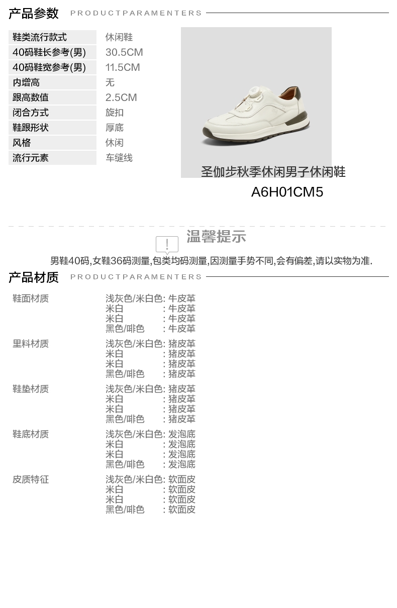 | 风格:休闲 | 色系:白色 | 跟高数值:2.5CM | 40码鞋宽参考(男):11.5CM | 性别:男子 |