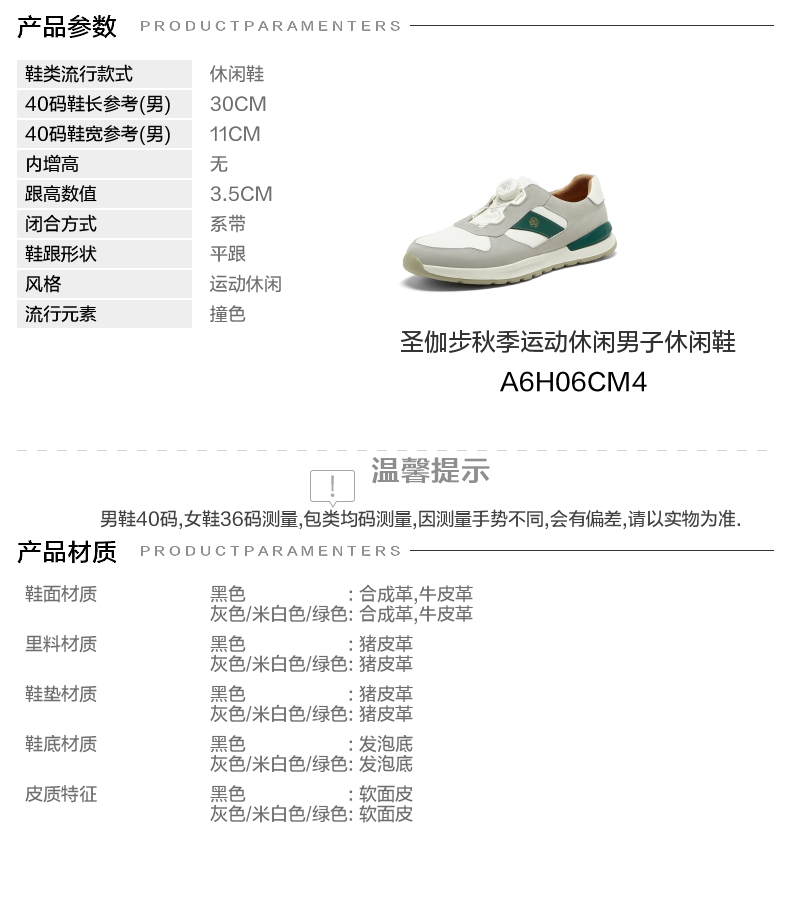 | 色系:灰色白色 | 跟高数值:3.5CM | 40码鞋宽参考(男):11CM | 性别:男子 | 里料材质:猪皮革 |