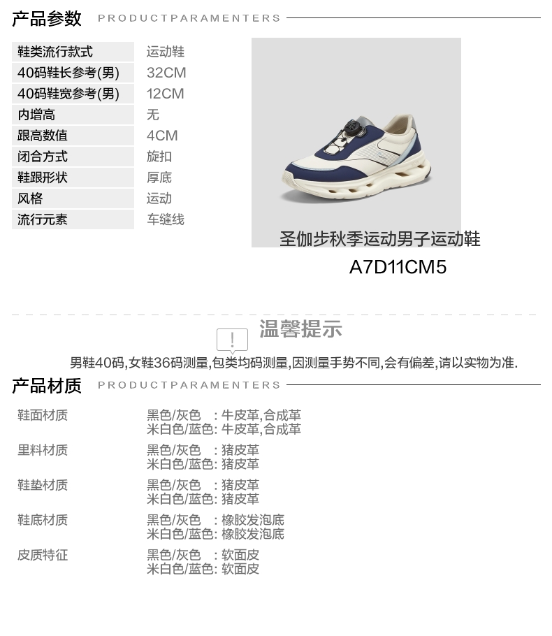 | 风格:运动 | 色系:蓝色 | 跟高数值:4CM | 40码鞋宽参考(男):12CM | 性别:男子 |