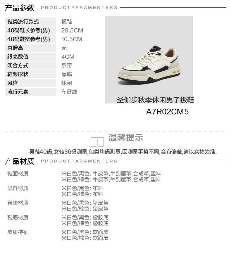 | 风格:休闲 | 色系:米色 | 跟高数值:4CM | 40码鞋宽参考(男):10.5CM | 性别:男子 |