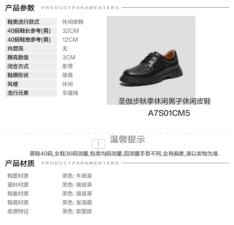 风格:休闲 色系:黑色 跟高数值:3CM 40码鞋宽参考(男):12CM 性别:男子