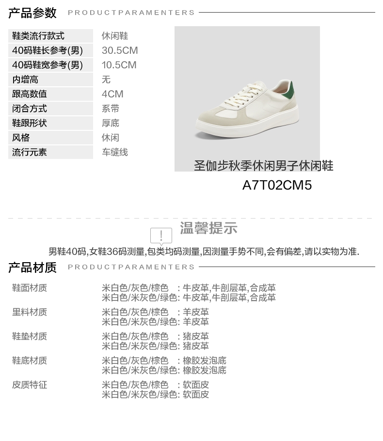 | 风格:休闲 | 色系:绿色 | 跟高数值:4CM | 40码鞋宽参考(男):10.5CM | 性别:男子 |