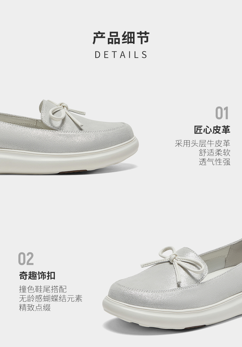 | 风格:休闲 | 跟高数值:3.5CM | 色系:银色 | 配跟:无 | 性别:女子 |