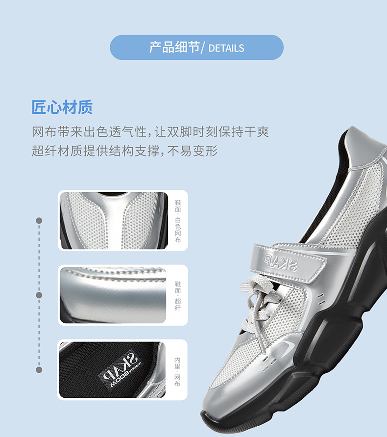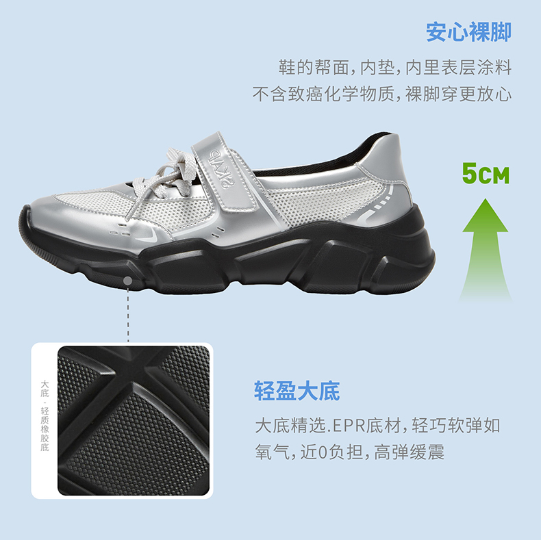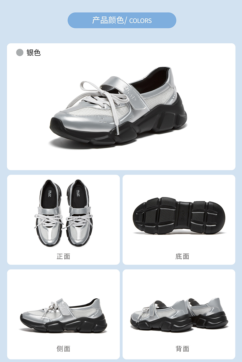 | 风格:休闲 | 跟高数值:5CM | 色系:银色 | 配跟:无 | 性别:女子 |
