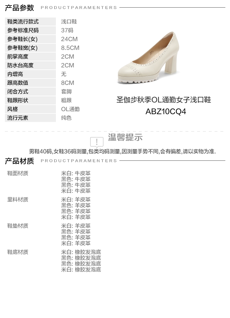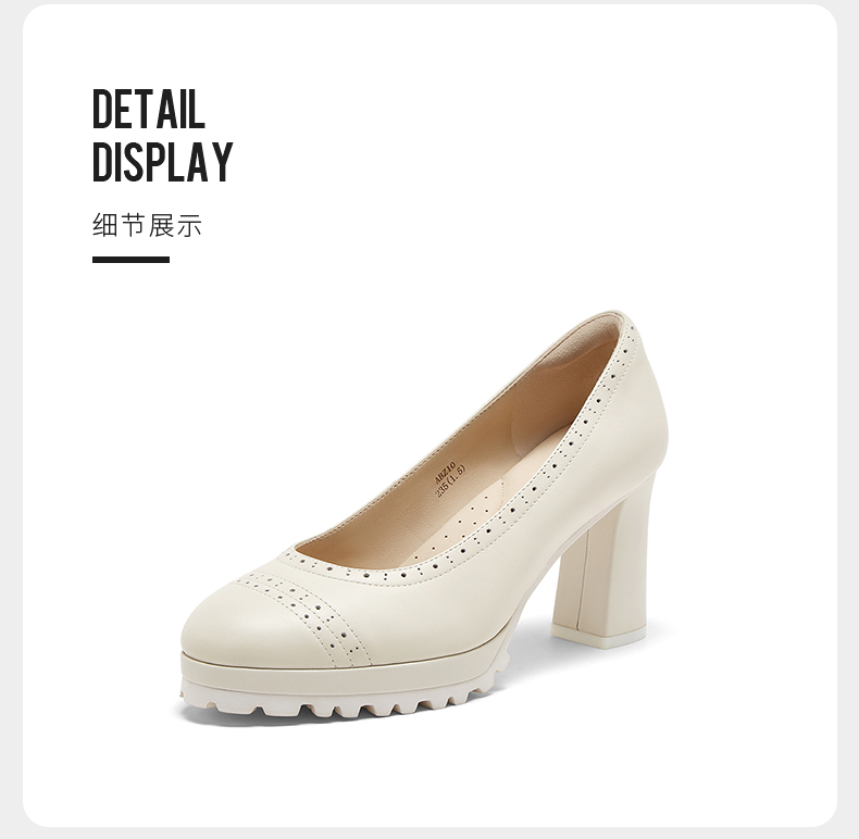 | 风格:OL通勤 | 跟高数值:8CM | 色系:米白 | 配跟:无 | 性别:女子 |