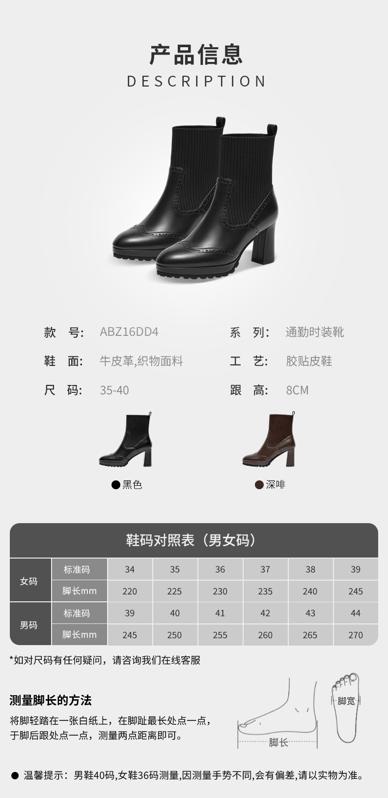 | 参考鞋宽(女):8CM | 风格:OL通勤 | 色系:黑色 | 跟高数值:8CM | 筒高数值:14.5CM |