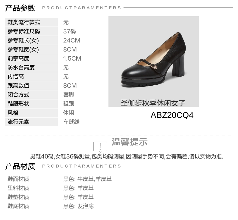 | 鞋垫材质:羊皮革 | 款式季节:秋季 | 前掌高度:1.5CM | 皮质特征:软面皮 | 防水台高度:无 |