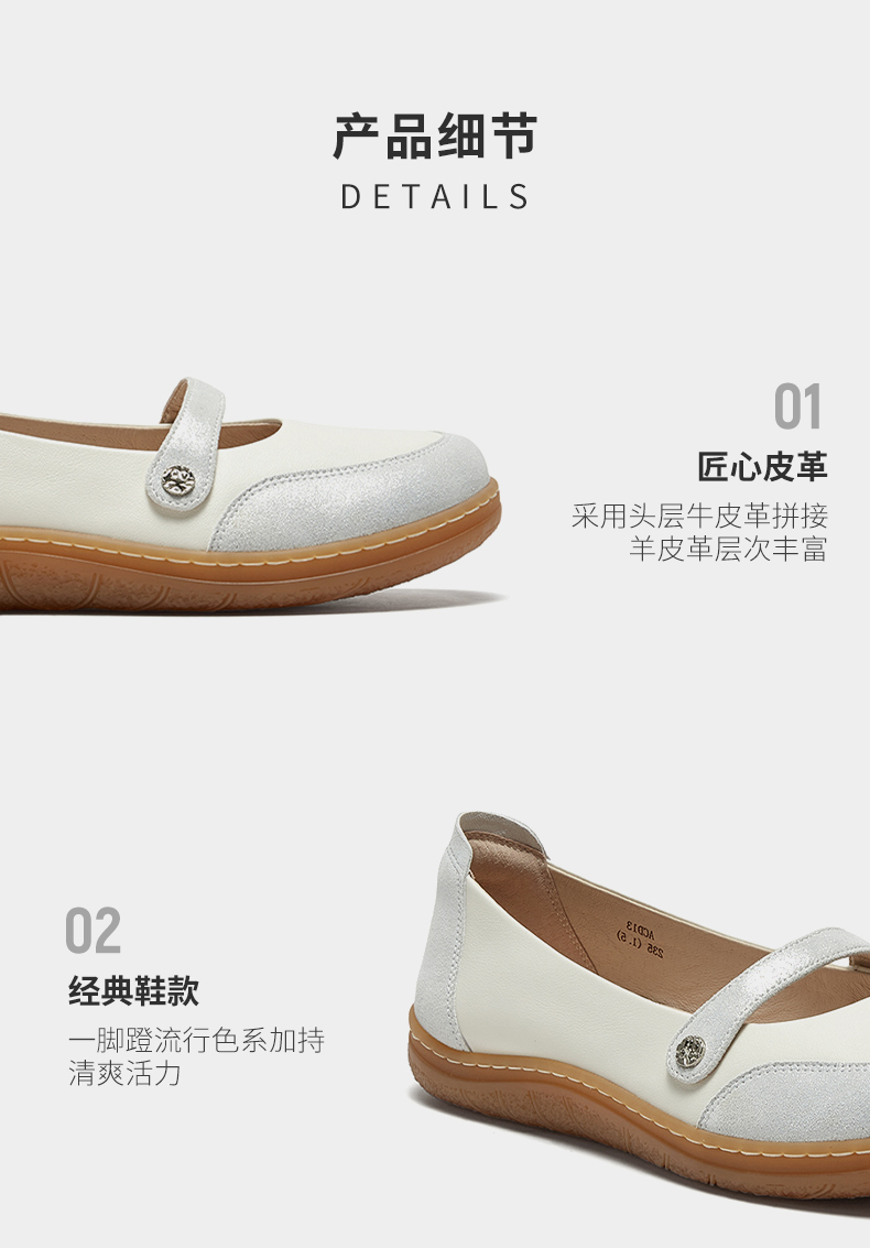 | 鞋面材质:羊皮革牛皮革 | 流行元素:撞色 | 参考鞋长(女):25.5CM | 参考鞋宽(女):9CM | 闭合方式:一字式扣带 |