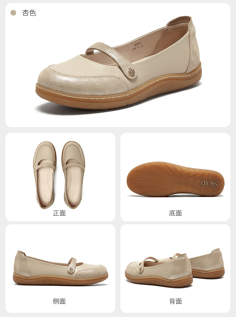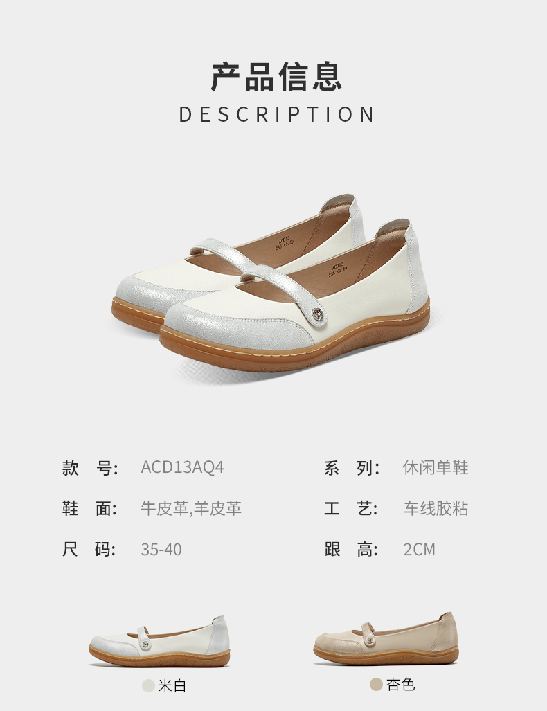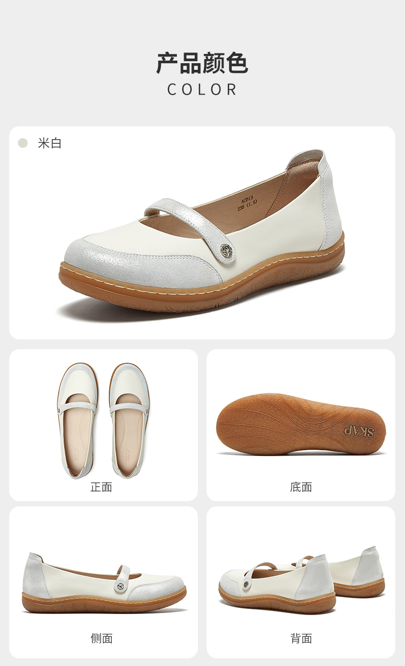 | 风格:休闲 | 跟高数值:2CM | 色系:米白 | 配跟:无 | 性别:女子 |