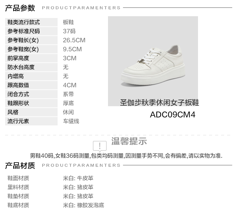 | 鞋跟形状:厚底 | 参考鞋长(女):26.5CM | 流行元素:车缝线 | 参考鞋宽(女):9.5CM | 风格:休闲 |
