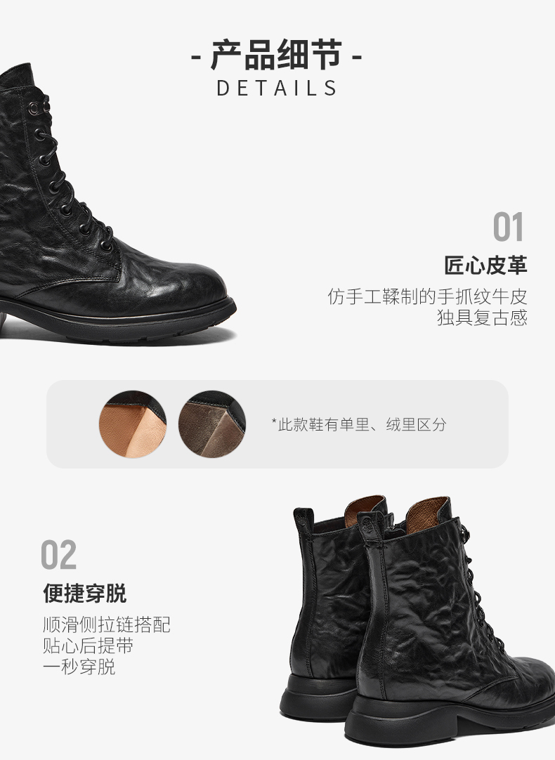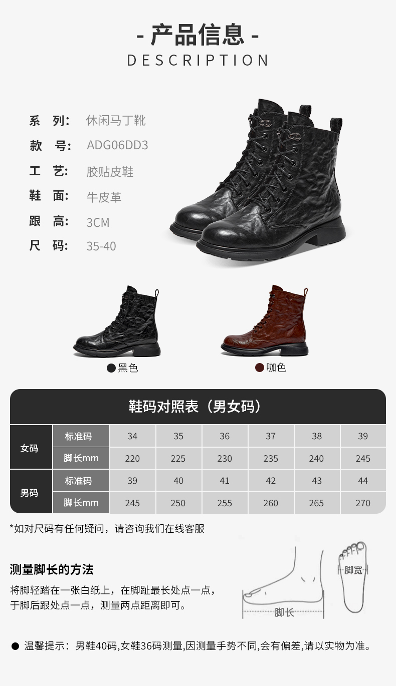 | 皮质特征:牛皮革 | 鞋类流行款式:马丁靴 |
