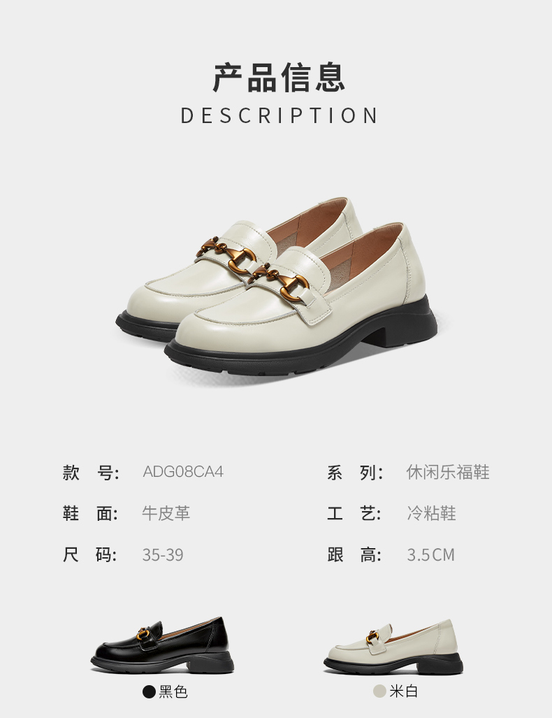 | 配跟:无 | 上市时间:2024年秋季 | 鞋类流行款式:乐福鞋 | 鞋头款式:圆头 | 鞋面图案:纯色 |