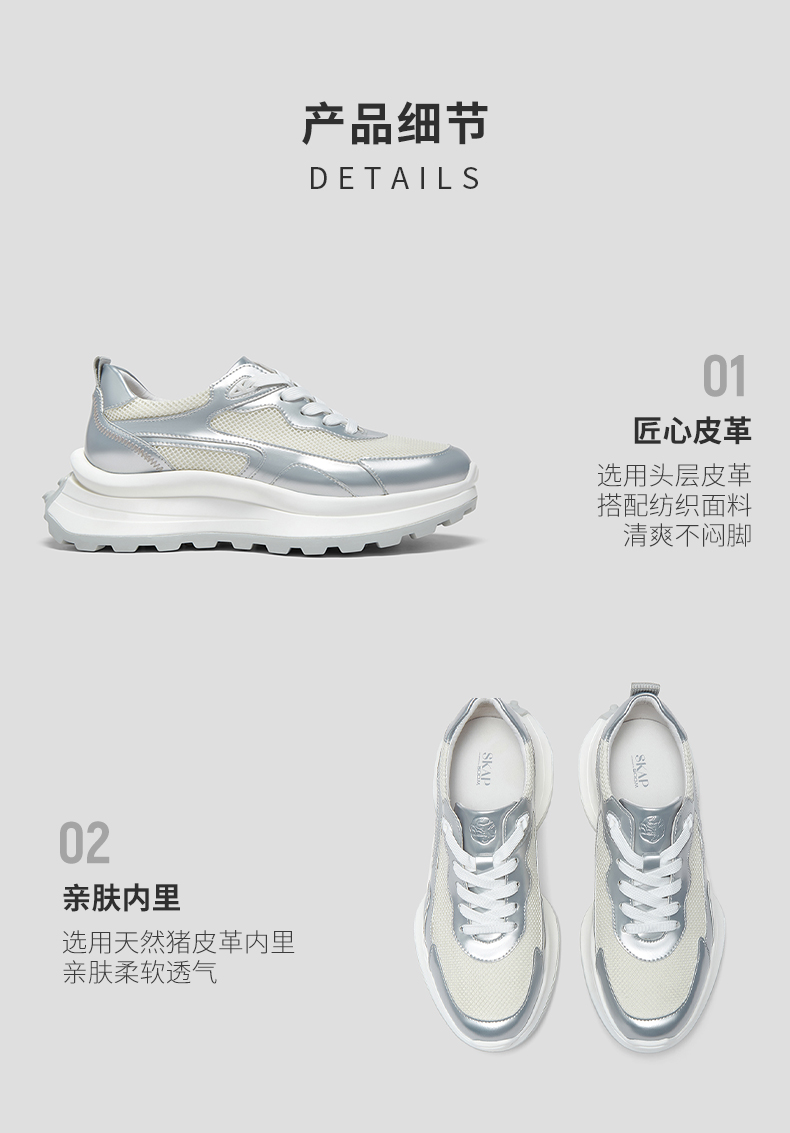 | 色系:银色 | 跟高数值:3CM | 性别:女子 | 里料材质:猪皮革 | 制鞋工艺:胶贴皮鞋 |