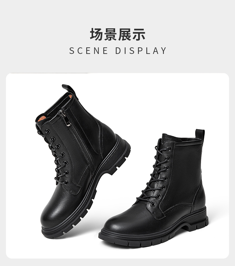 | 鞋底材质:橡胶底 | 靴筒内里材质:猪皮革 | 内增高:无 | 鞋面材质:羊皮革牛皮革 | 闭合方式:系带 |