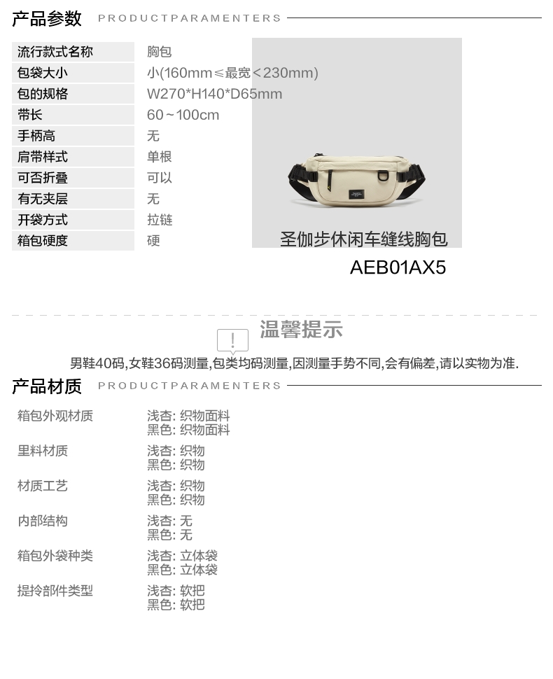 | 上市时间:2025年春季 | 适用对象:青年 | 生产/经销/进口厂家:深圳市龙浩天地有限公司 | 肩带样式:单根 | 执行标准:Q/LHTD 012-2019 |