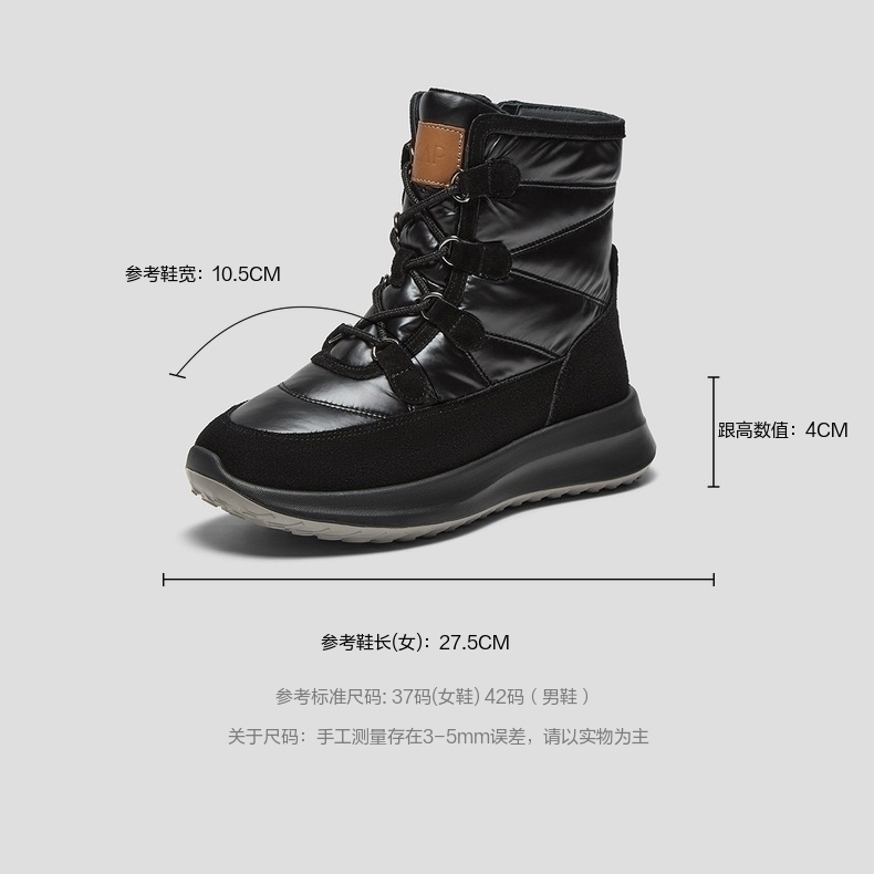 | 参考鞋宽(女):10CM | 风格:休闲 | 鞋面内里材质:人造长毛绒 | 色系:黑色 | 跟高数值:4CM |