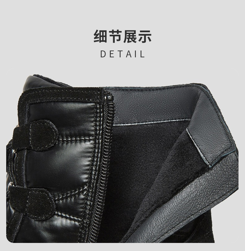 | 鞋底材质:发泡底 | 靴筒内里材质:人造长毛绒 | 内增高:无 | 鞋面材质:牛剖层革织物 | 闭合方式:侧拉链 |