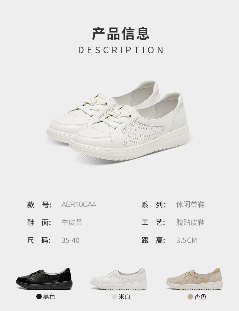 | 色系:米白 | 跟高数值:3.5CM | 性别:女子 | 里料材质:牛皮革 | 制鞋工艺:胶贴皮鞋 |