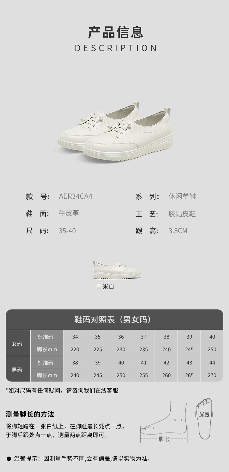 | 鞋帮:低帮 | 鞋底材质:发泡底 | 内增高:无 | 鞋面材质:牛皮革 | 闭合方式:松紧带 |