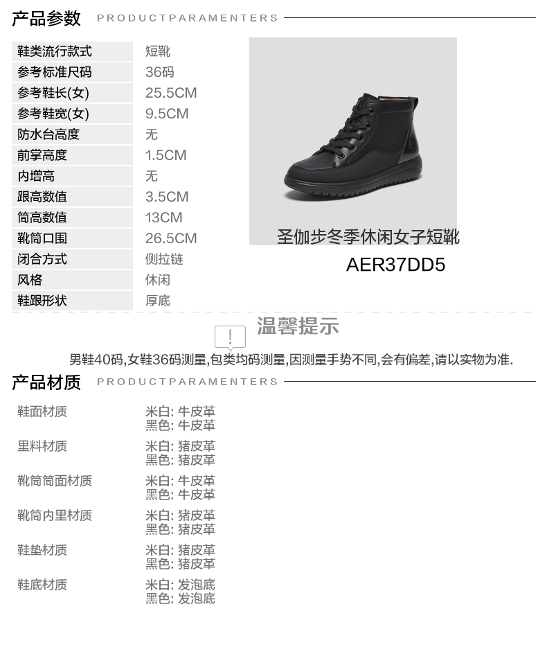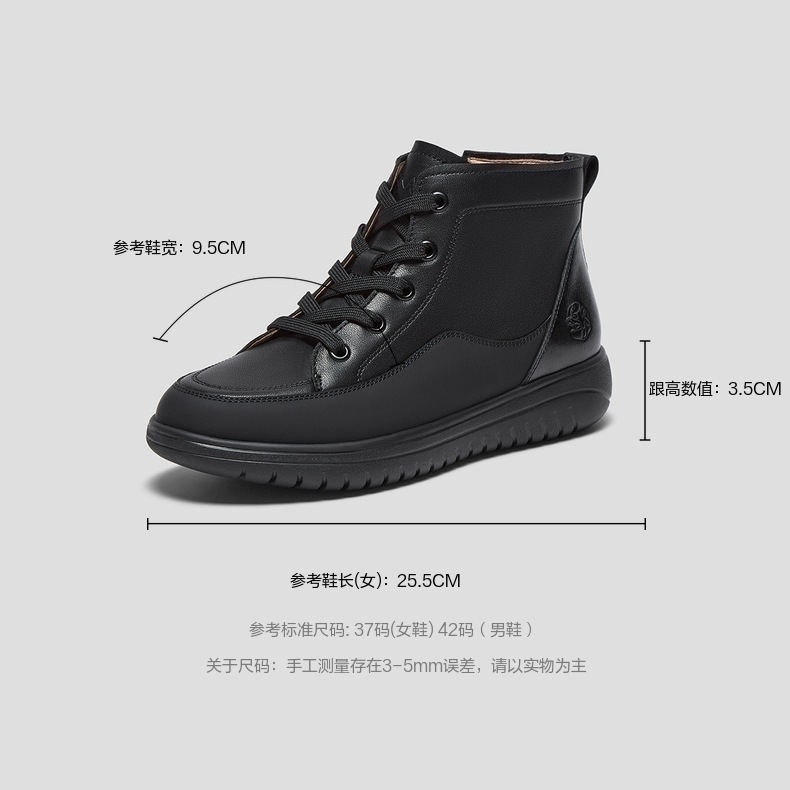 | 参考鞋宽(女):9.5CM | 风格:休闲 | 鞋面内里材质:猪皮革 | 色系:黑色 | 跟高数值:3.5CM |