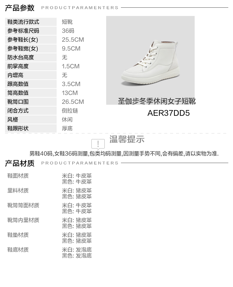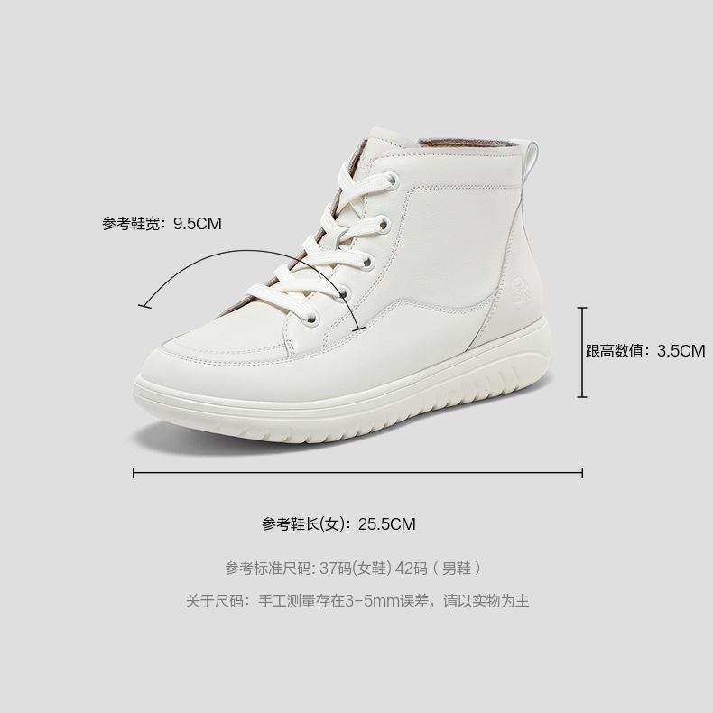 | 参考鞋宽(女):9.5CM | 风格:休闲 | 鞋面内里材质:猪皮革 | 色系:白色 | 跟高数值:3.5CM |