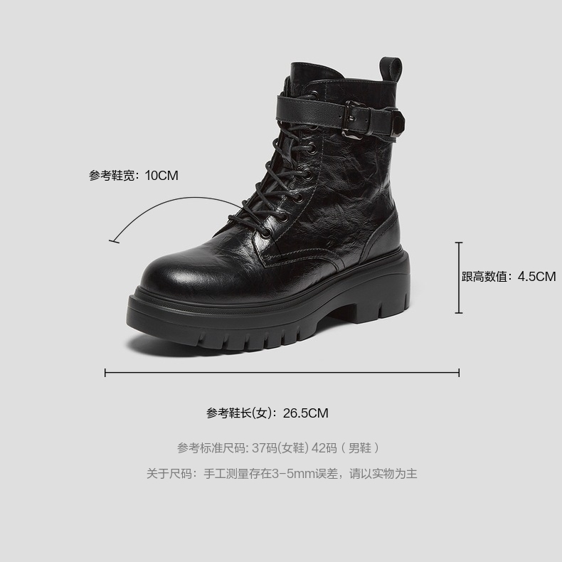 | 帮面材质:牛皮革 | 配跟:无 | 靴筒口围:27CM | 上市时间:2025年冬季 | 鞋类流行款式:马丁靴 |