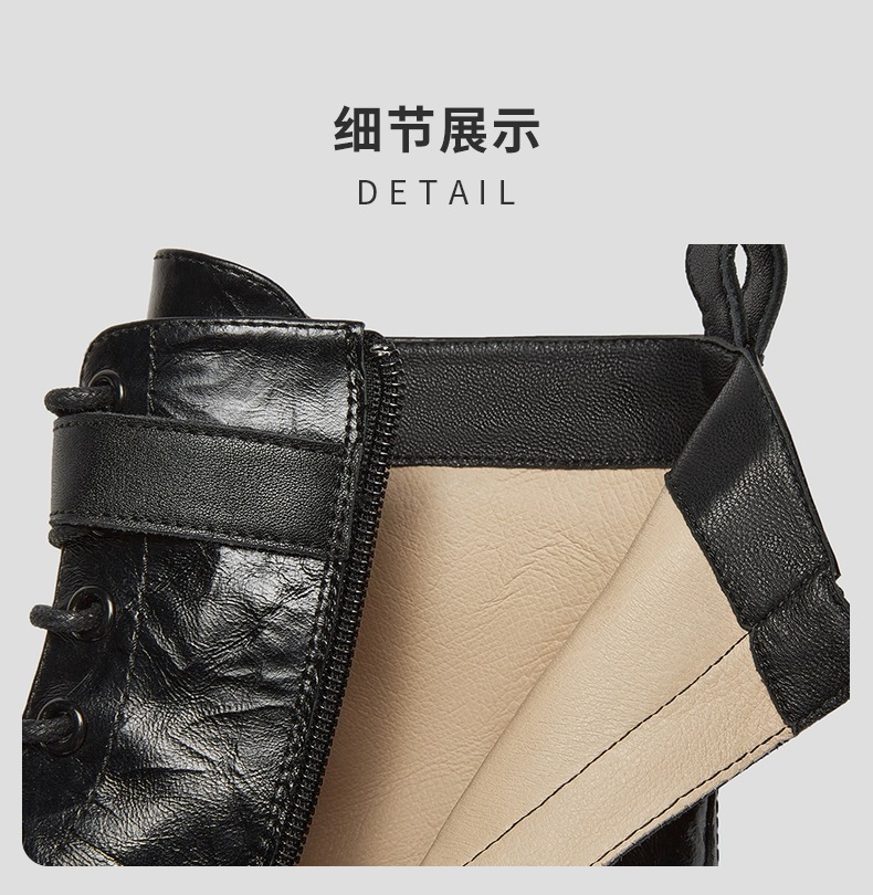 | 鞋底材质:橡胶发泡底 | 靴筒内里材质:猪皮革 | 内增高:无 | 鞋面材质:牛皮革 | 闭合方式:侧拉链 |
