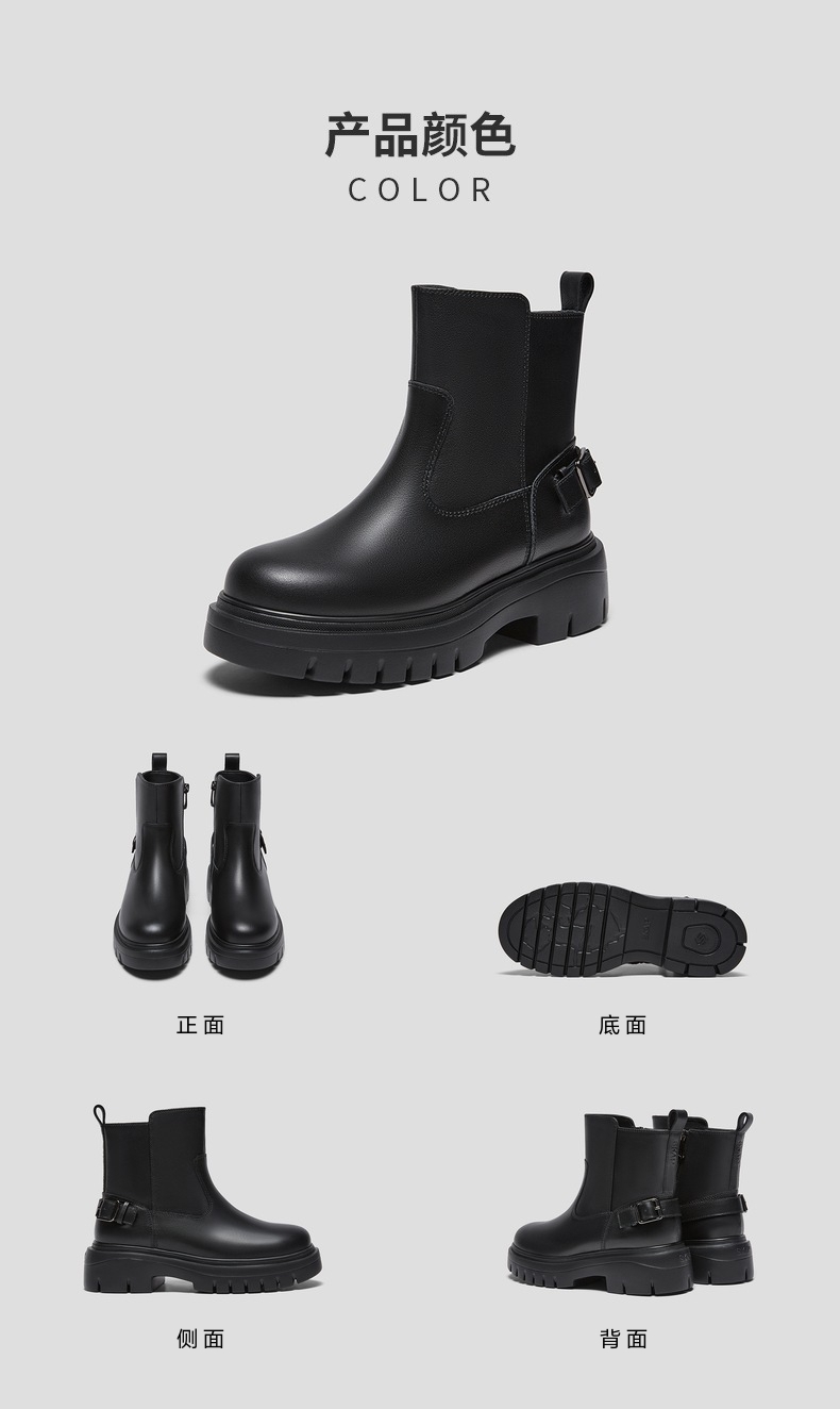 | 鞋底材质:橡胶发泡底 | 靴筒内里材质:猪皮革 | 内增高:无 | 鞋面材质:牛皮革 | 闭合方式:侧拉链 |