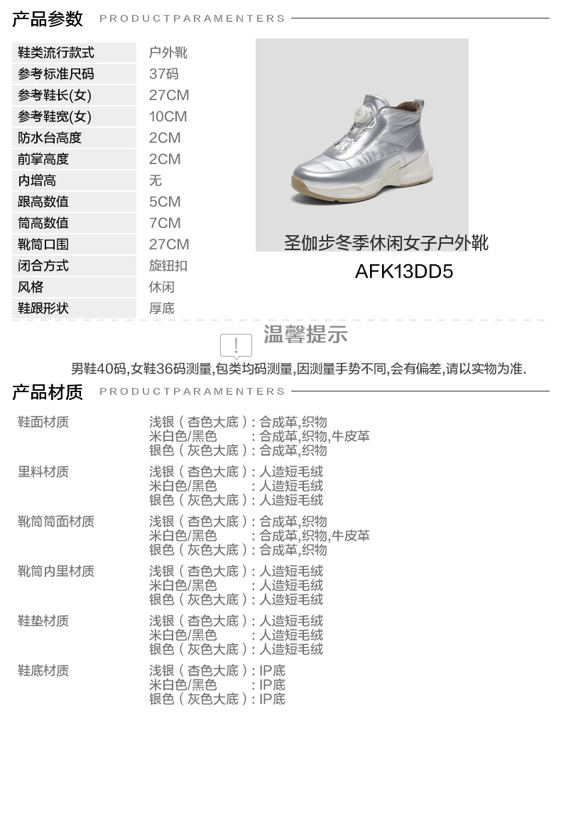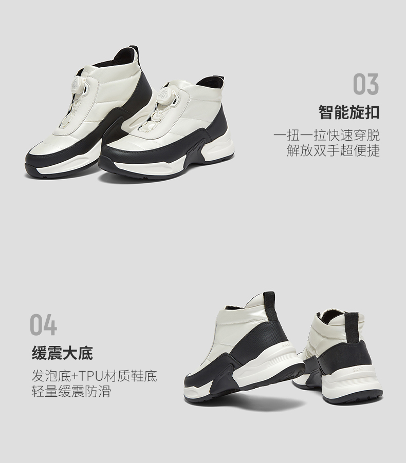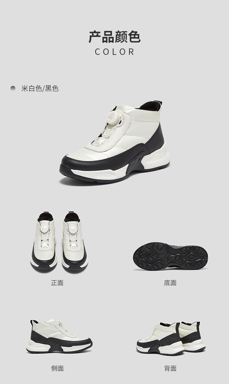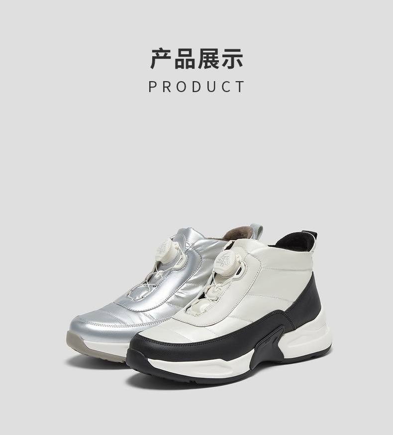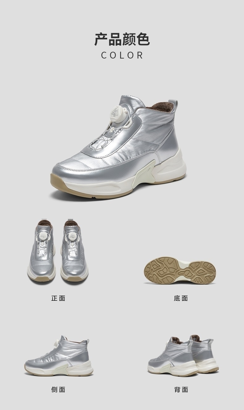 | 鞋底材质:IP底 | 靴筒内里材质:人造短毛绒 | 内增高:无 | 鞋面材质:合成革织物 | 闭合方式:旋钮扣 |