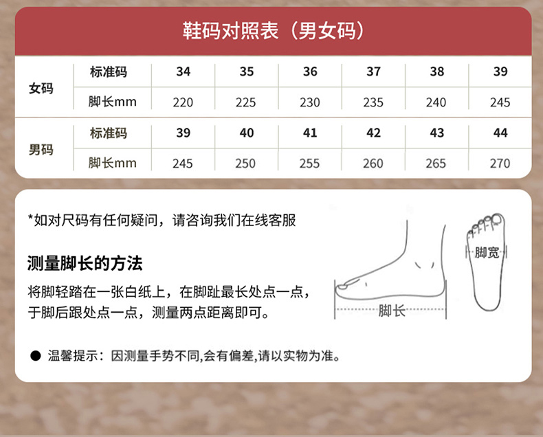 | 鞋跟形状:厚底 | 参考鞋长(女):26CM | 流行元素:车缝线 | 参考鞋宽(女):9.5CM | 风格:休闲 |