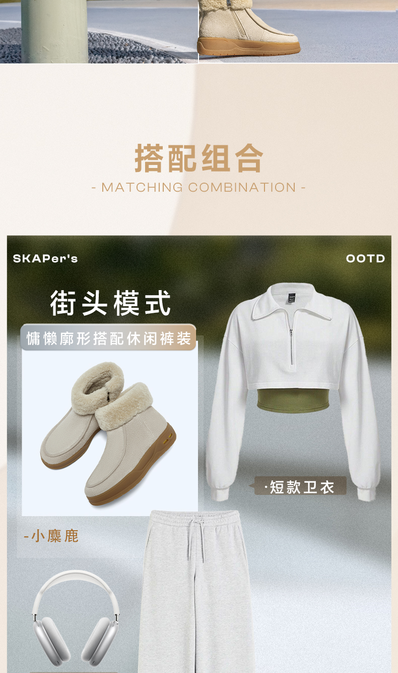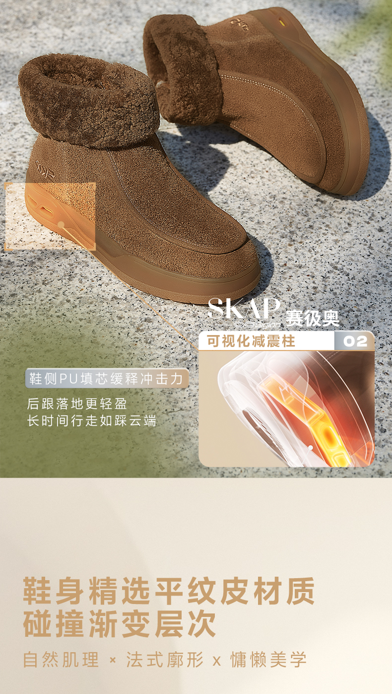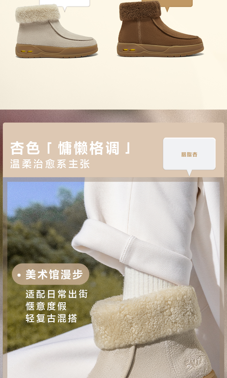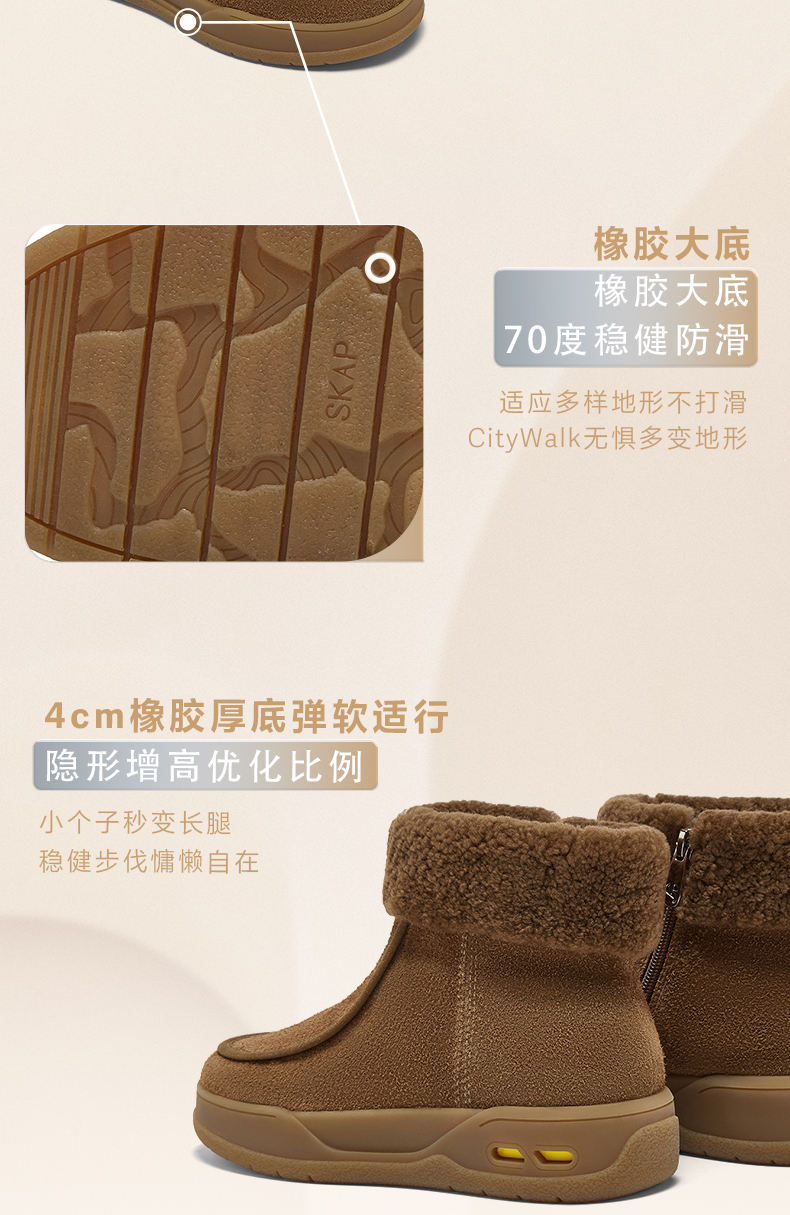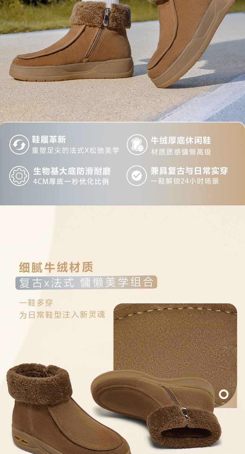 | 帮面材质:羊毛皮牛剖层革 | 配跟:无 | 靴筒口围:35CM | 上市时间:2025年冬季 | 鞋类流行款式:雪地靴 |