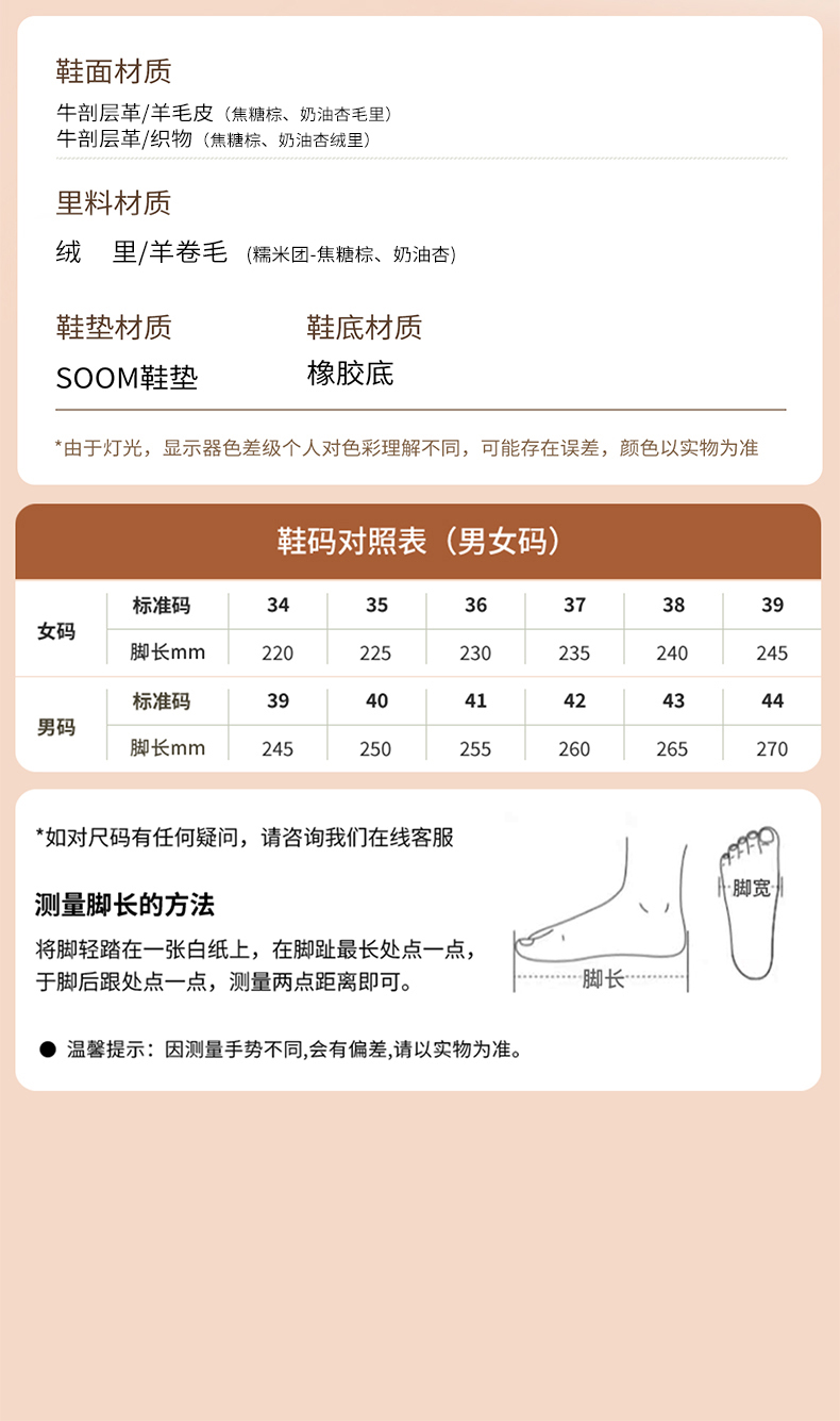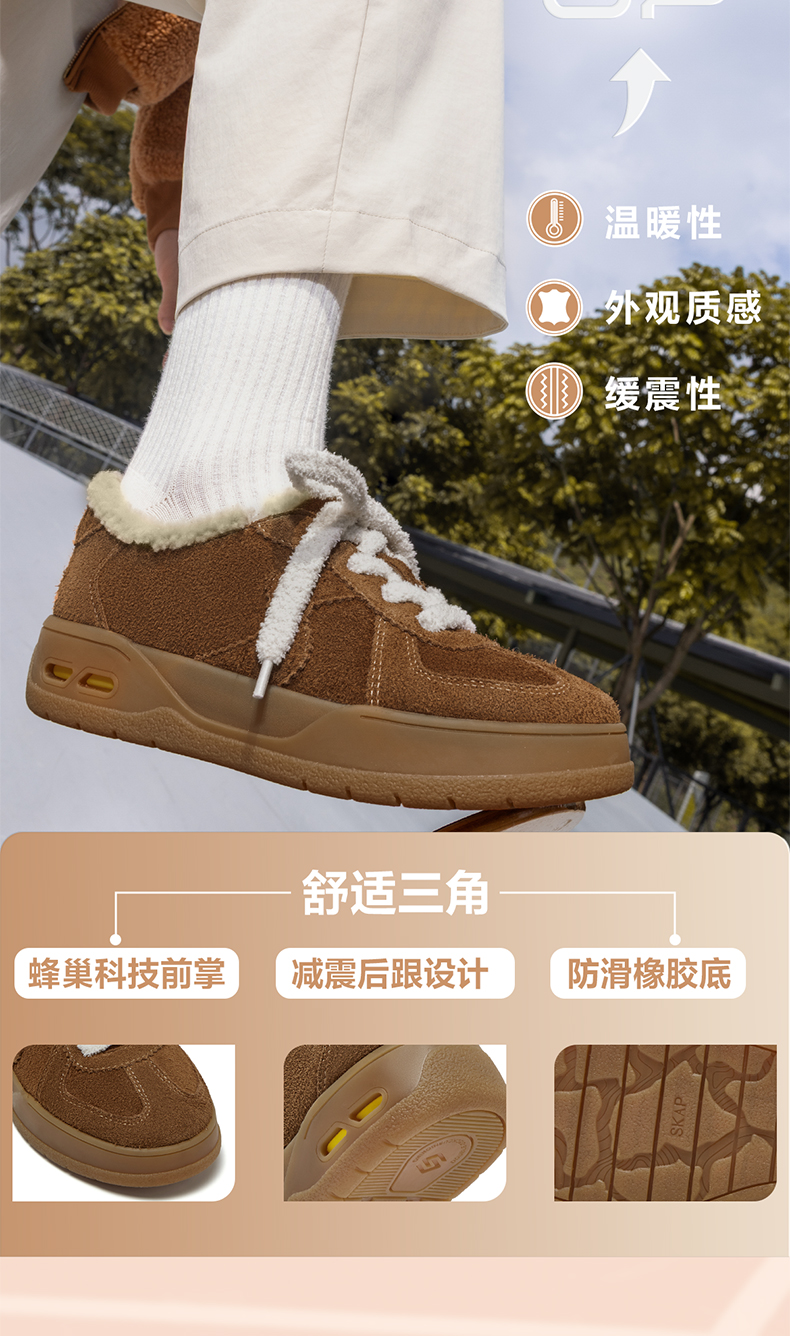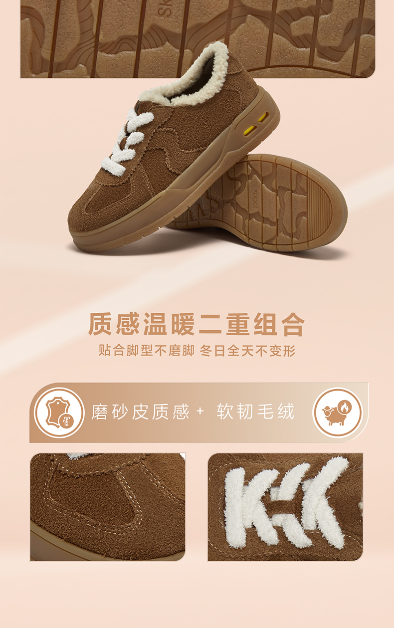 | 里料材质:人造短毛绒 | 制鞋工艺:胶贴皮鞋 | 鞋垫材质:人造短毛绒 | 款式季节:秋季 | 前掌高度:3CM |