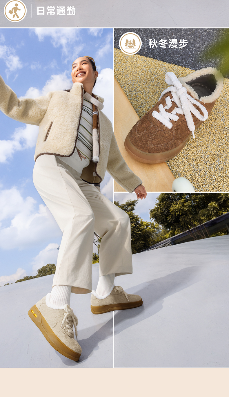 | 鞋面内里材质:人造短毛绒 | 色系:卡其 | 跟高数值:4CM | 适用人群:青少年 | 性别:女子 |