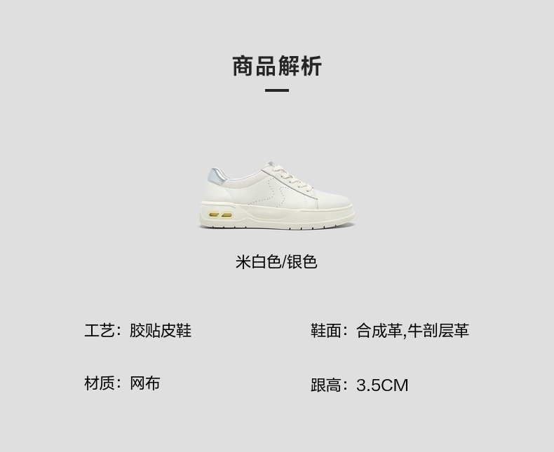 | 色系:米白 | 跟高数值:3.5CM | 性别:女子 | 里料材质:网布 | 制鞋工艺:胶贴皮鞋 |