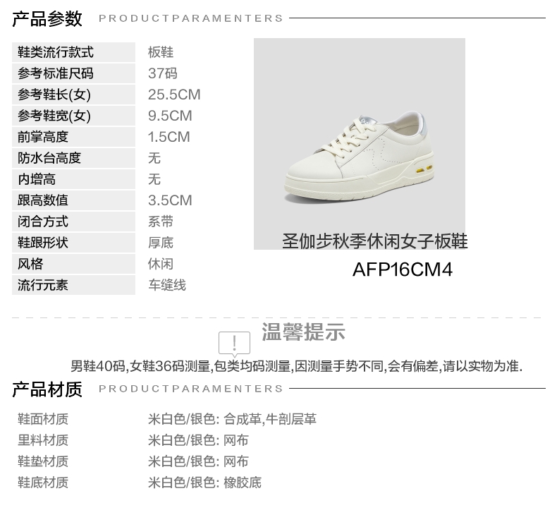 | 鞋跟形状:厚底 | 参考鞋长(女):25.5CM | 流行元素:车缝线 | 参考鞋宽(女):9.5CM | 风格:休闲 |