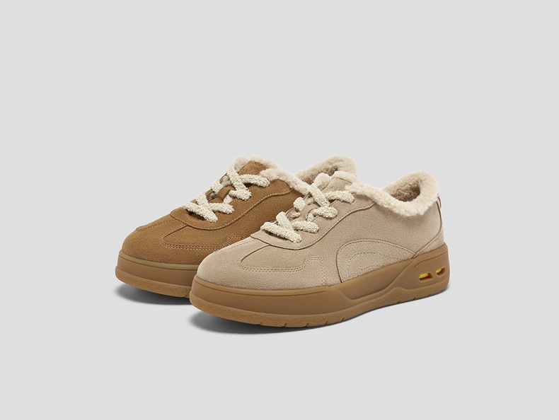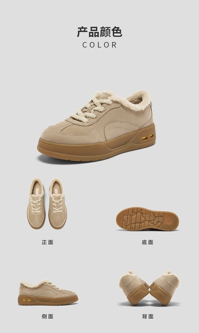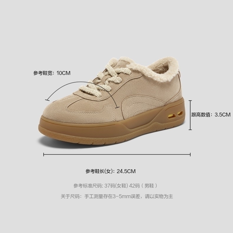 | 鞋面内里材质:人造短毛绒 | 色系:杏色 | 跟高数值:3.5CM | 适用人群:青少年 | 性别:女子 |