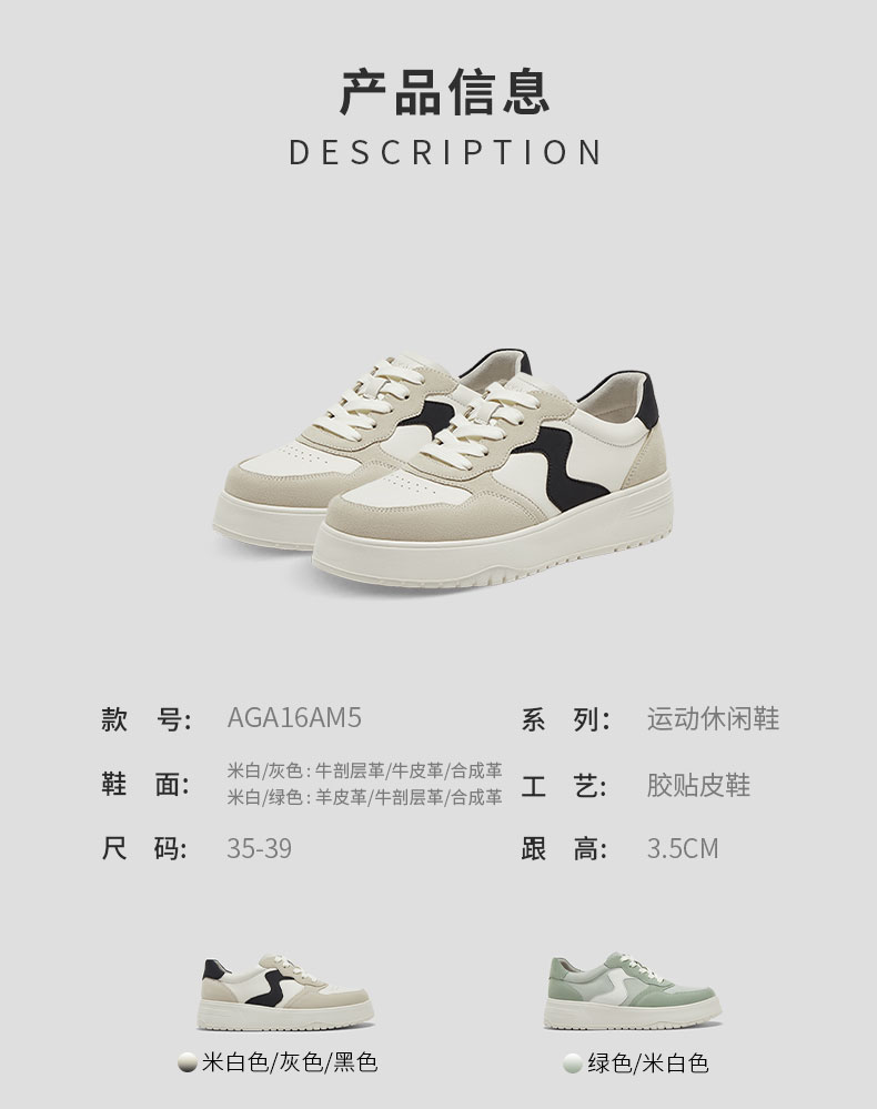 | 鞋帮:低帮 | 鞋底材质:发泡底 | 内增高:无 | 鞋面材质:牛剖层革羊皮革合成革 | 闭合方式:系带 |