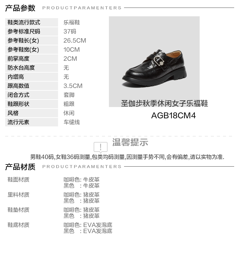| 配跟:无 | 上市时间:2024年秋季 | 鞋类流行款式:乐福鞋 | 鞋头款式:圆头 | 鞋面图案:纯色 |
