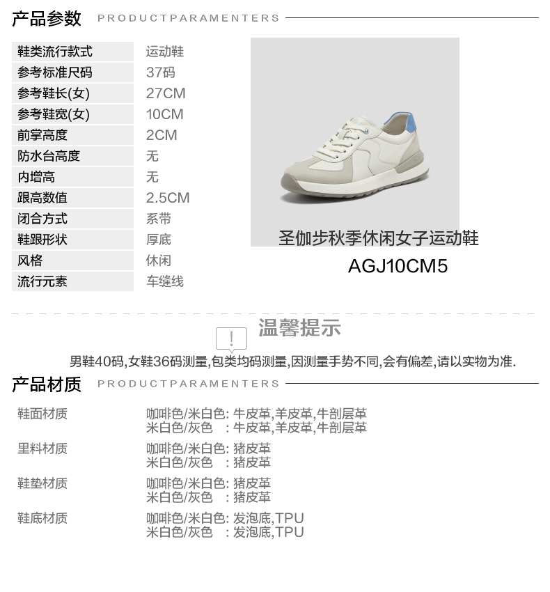 | 鞋帮:低帮 | 鞋底材质:TPU发泡底 | 内增高:无 | 鞋面材质:羊皮革牛皮革牛剖层革 | 闭合方式:系带 |