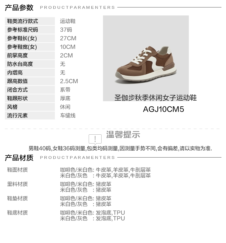 | 鞋帮:低帮 | 鞋底材质:TPU发泡底 | 内增高:无 | 鞋面材质:羊皮革牛皮革牛剖层革 | 闭合方式:系带 |