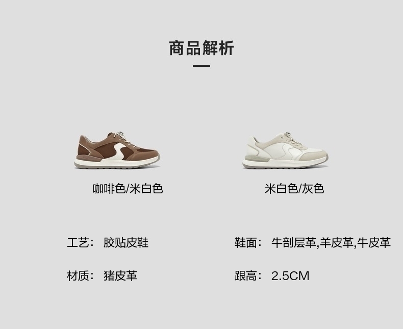 | 鞋帮:低帮 | 鞋底材质:TPU发泡底 | 内增高:无 | 鞋面材质:牛剖层革牛皮革羊皮革 | 闭合方式:系带 |
