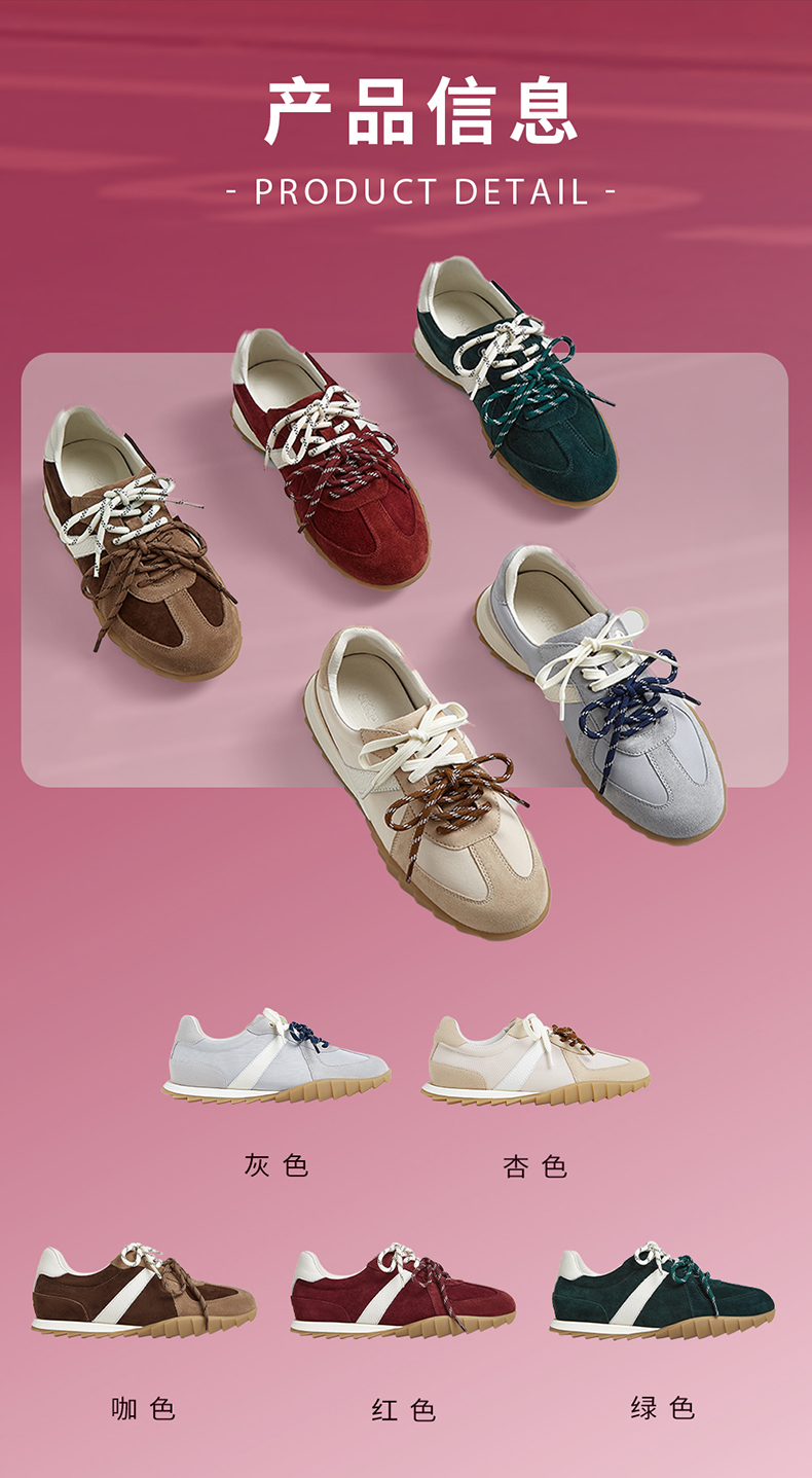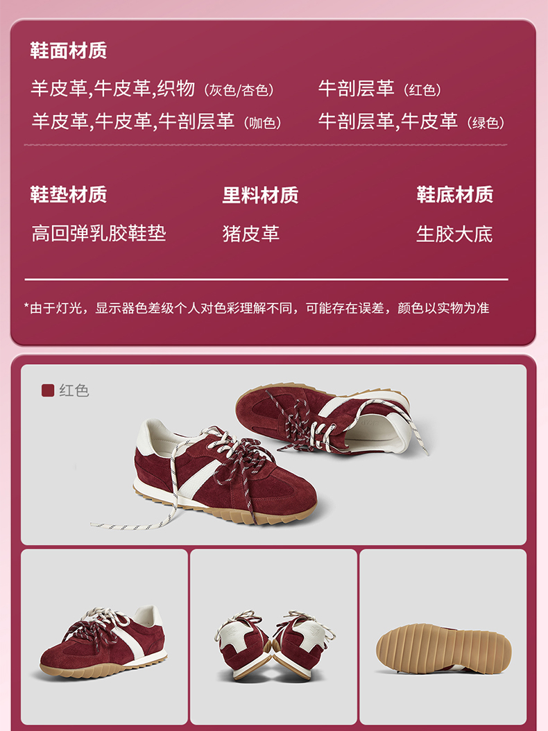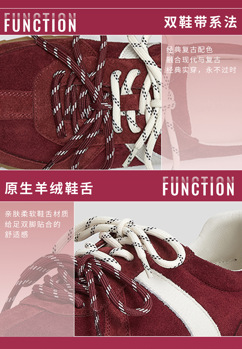 | 鞋帮:低帮 | 鞋底材质:橡胶 | 内增高:无 | 鞋面材质:牛剖层革牛皮革 | 闭合方式:系带 |