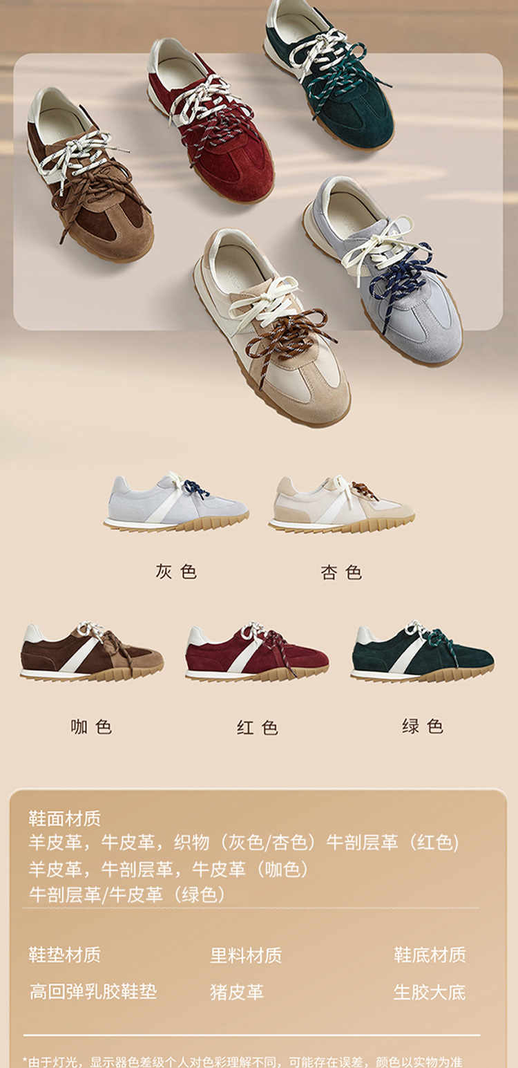| 鞋帮:低帮 | 鞋底材质:橡胶 | 内增高:无 | 鞋面材质:牛皮革织物羊皮革 | 闭合方式:系带 |