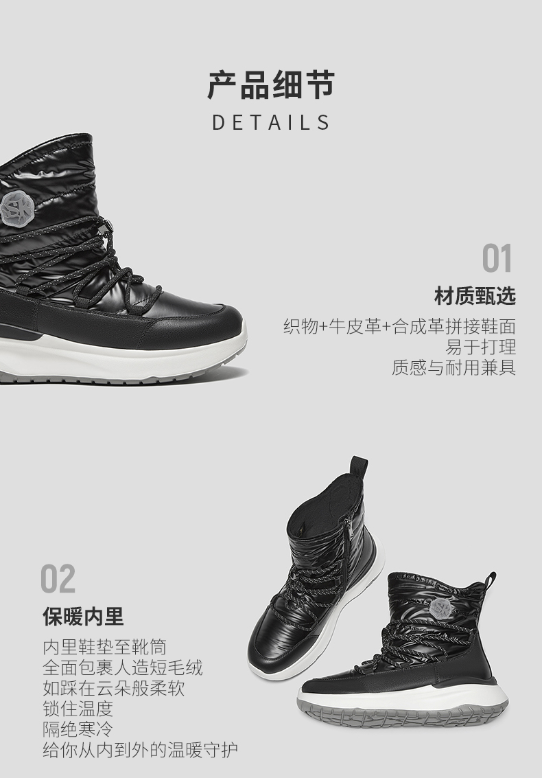 | 帮面材质:合成革织物 | 配跟:无 | 靴筒口围:32CM | 上市时间:2025年冬季 | 鞋类流行款式:雪地靴 |