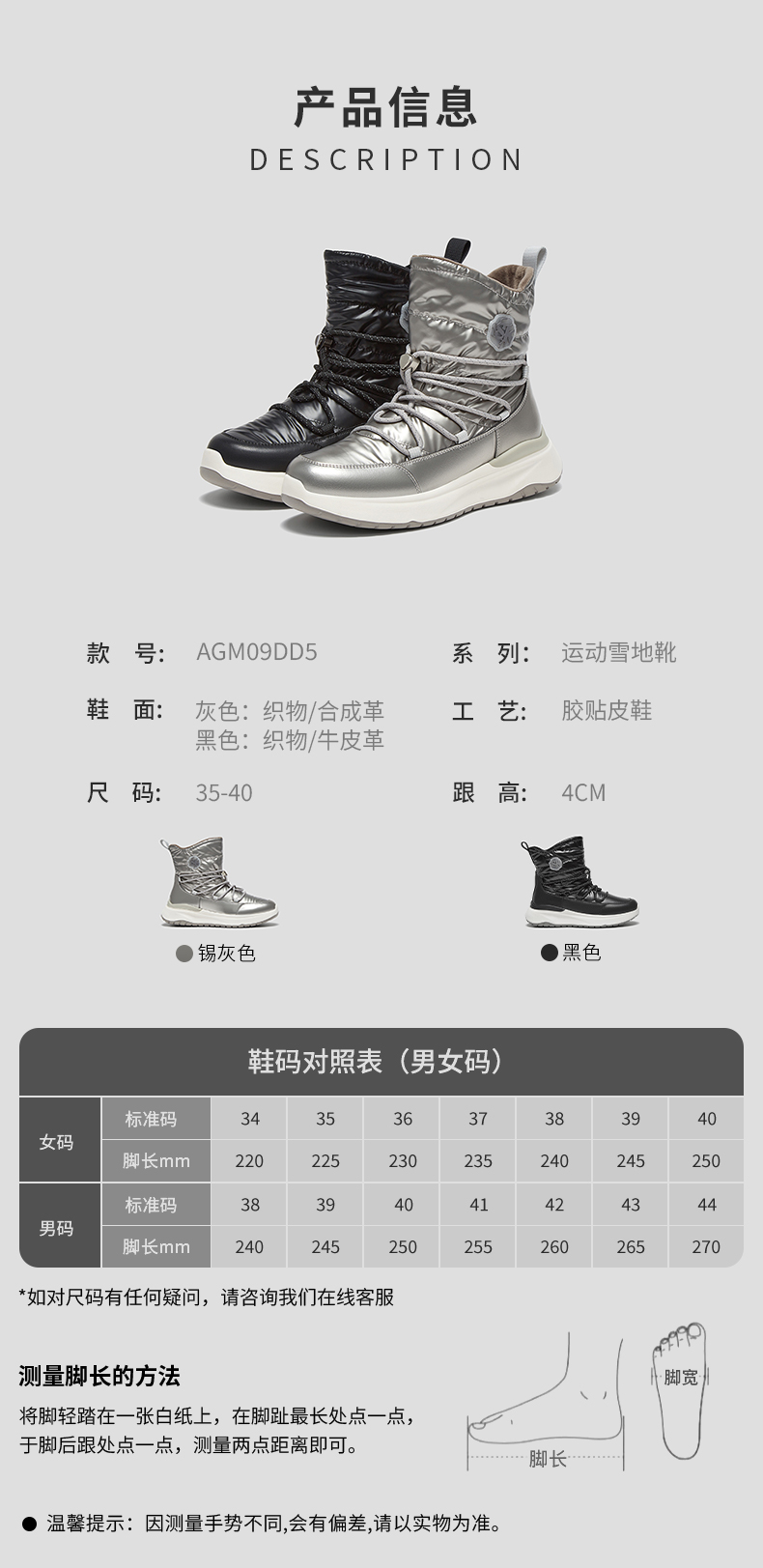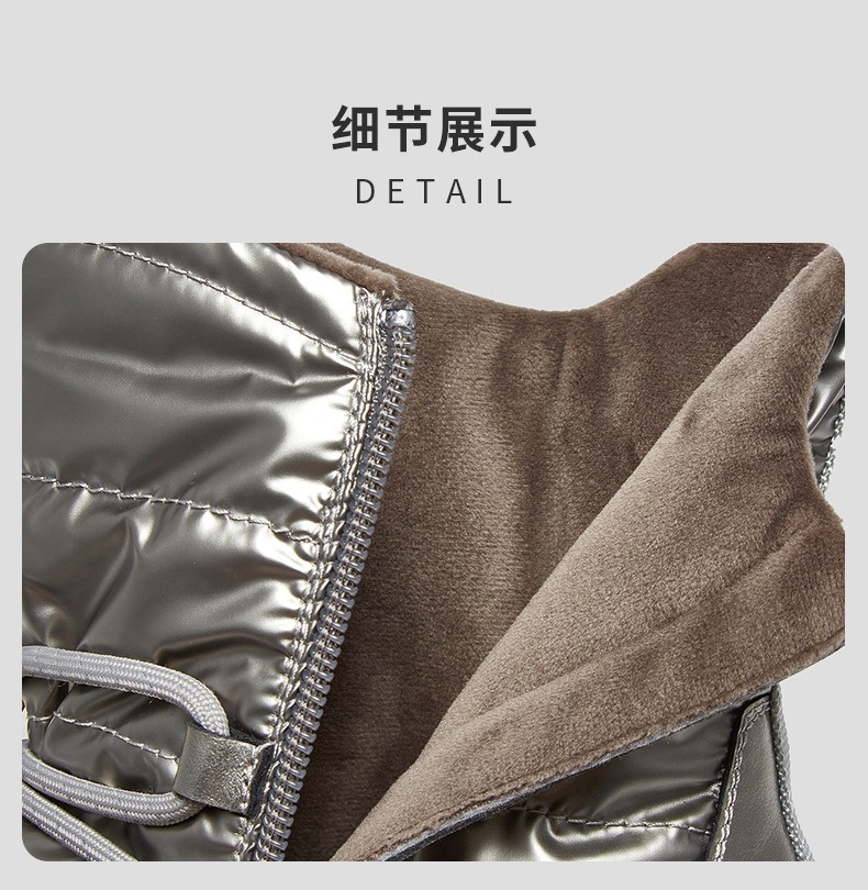 | 参考鞋宽(女):10CM | 风格:休闲 | 鞋面内里材质:人造短毛绒 | 色系:银色 | 跟高数值:4CM |