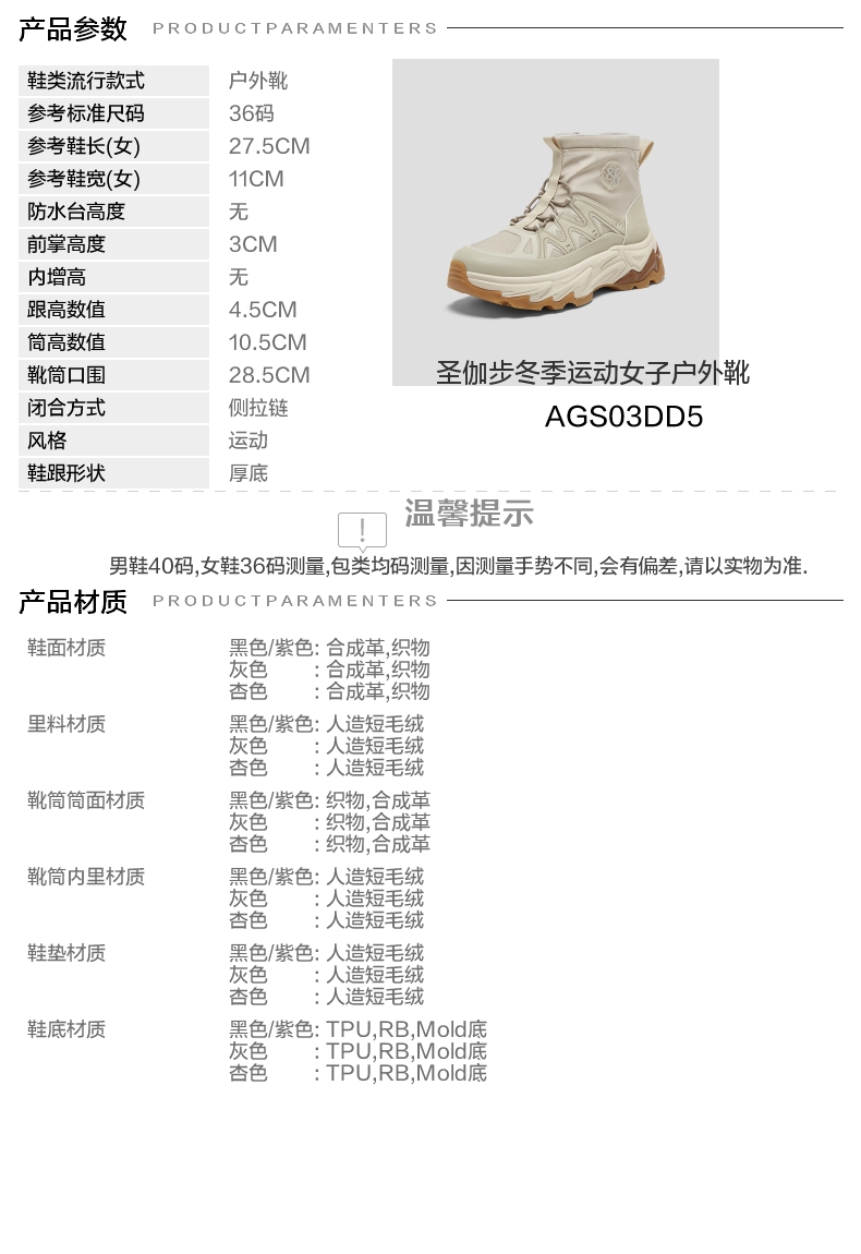 | 参考鞋宽(女):11CM | 风格:运动 | 鞋面内里材质:人造短毛绒 | 色系:杏色 | 跟高数值:4.5CM |