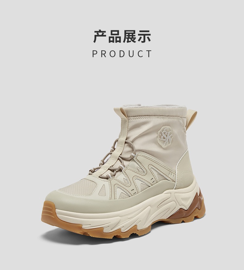 | 帮面材质:织物合成革 | 配跟:无 | 靴筒口围:28.5CM | 上市时间:2025年冬季 | 鞋类流行款式:户外靴 |