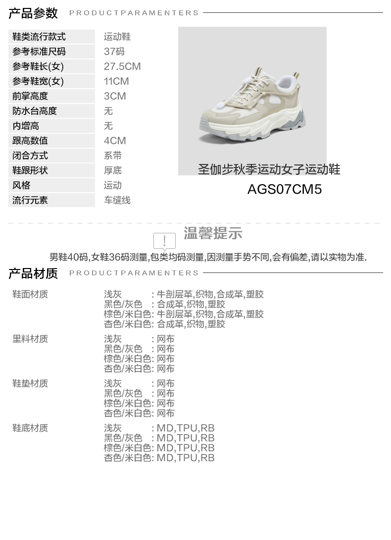 | 鞋跟形状:厚底 | 参考鞋长(女):27.5CM | 流行元素:车缝线 | 参考鞋宽(女):11CM | 风格:运动 |
