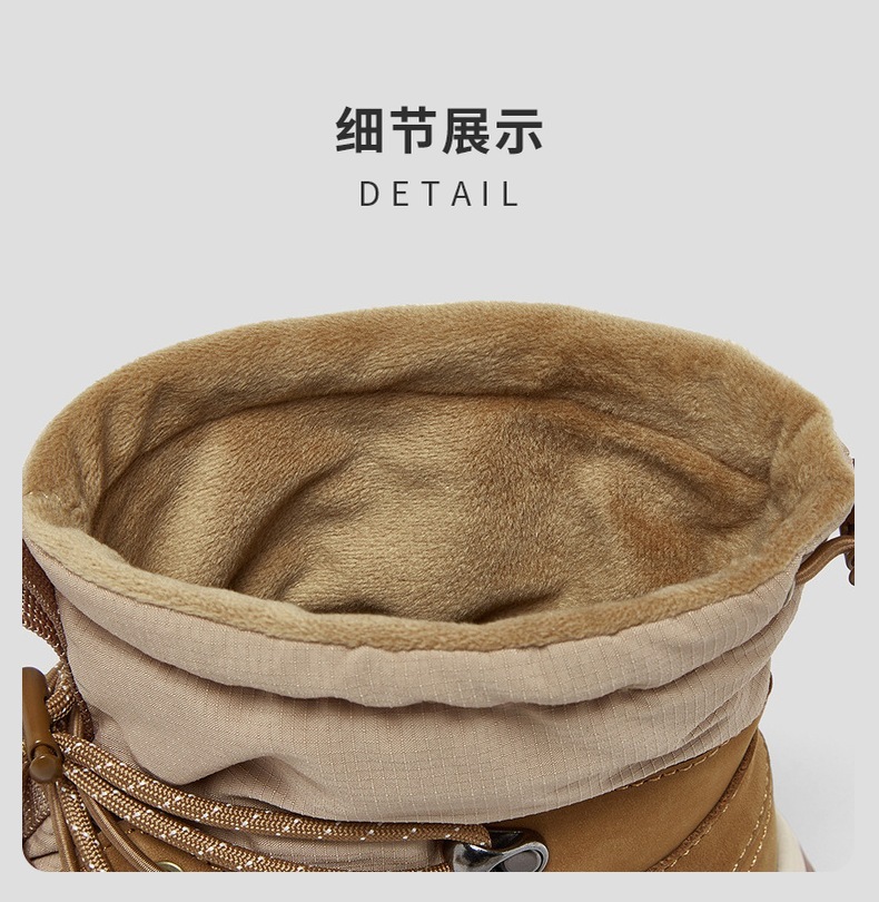 | 帮面材质:织物牛皮革 | 配跟:无 | 靴筒口围:31CM | 上市时间:2025年冬季 | 鞋类流行款式:雪地靴 |